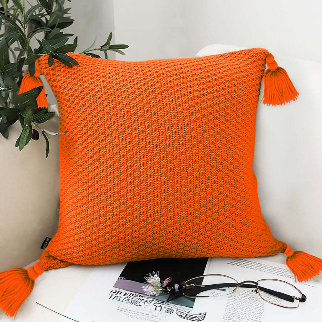 Brighten your space instantly with these vibrant coral orange chunky knit pillowcase covers! Designed to add warmth and cheerful energy to your decor, each cover features playful tassels that dance with every movement, bringing a fun and cozy vibe to your living room or bedroom. The rich texture and lively color make these pillowcases a perfect choice for creating an inviting, stylish atmosphere in any season.