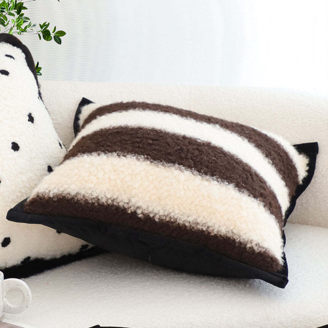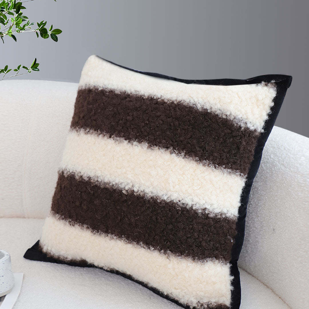 SOGA 2X 45cm Cozy Brown Cream Striped Bouclé Pillow Covers for Sofa and Bed