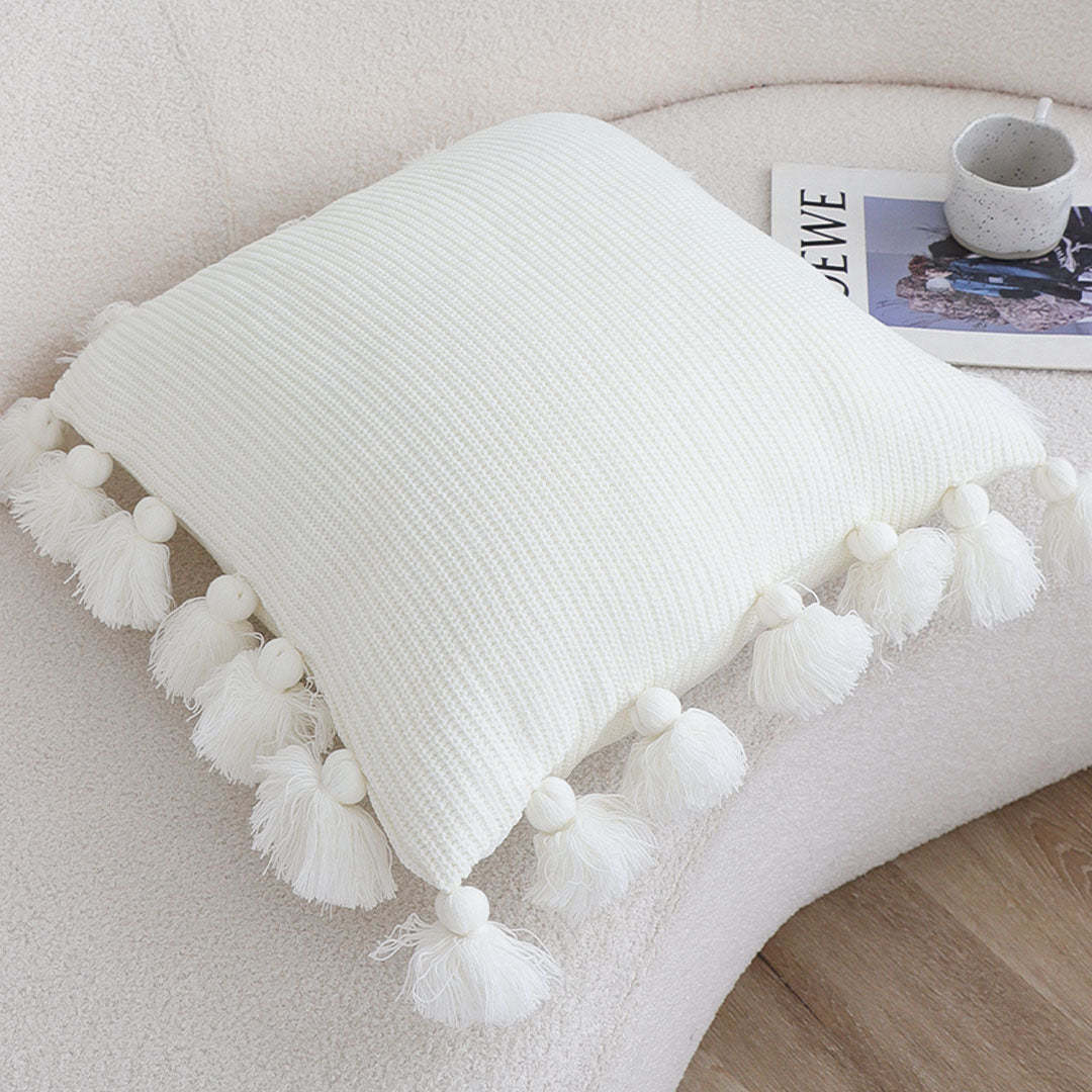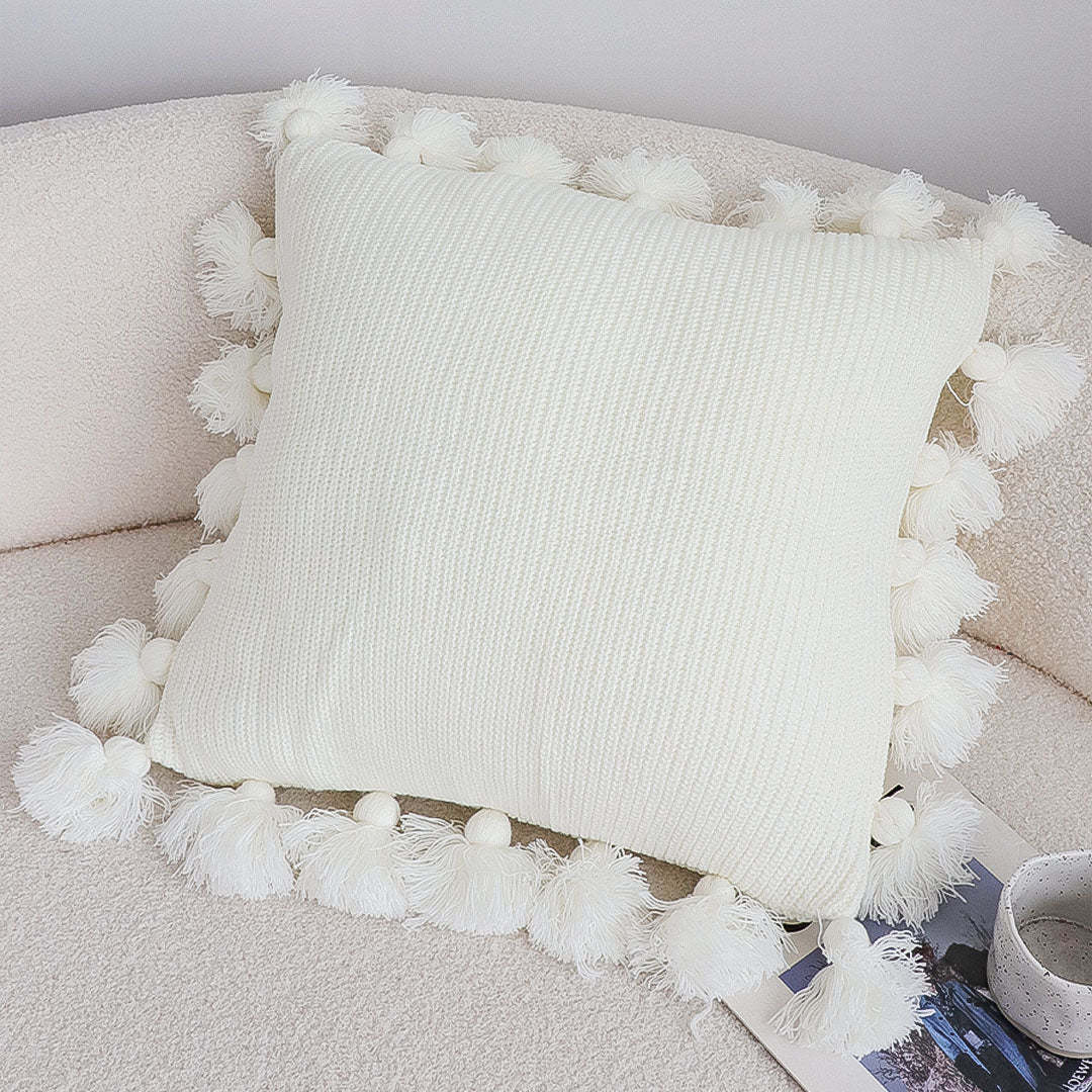 Achieve classic elegance in your home with this set of pure white textured pillowcase covers, each adorned with delicate pom-pom trim for a timeless look with a playful touch. The soft woven texture adds visual interest while the crisp white hue keeps your space feeling fresh, bright, and inviting. Perfect for layering on your bed, sofa, or reading nook, these pillow covers instantly elevate your decor while maintaining a clean, serene aesthetic. Ideal for those seeking a minimalist yet charming finish in any room.