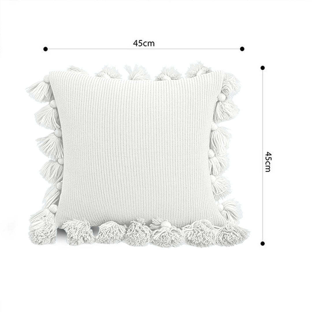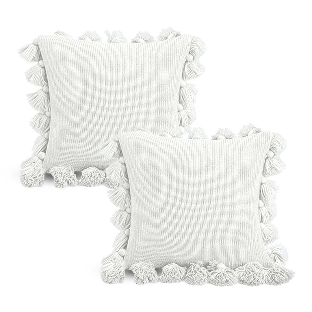 SOGA Set of 2 Textured 45cm Pillow Covers with Pom-Pom Trim (Pure White)