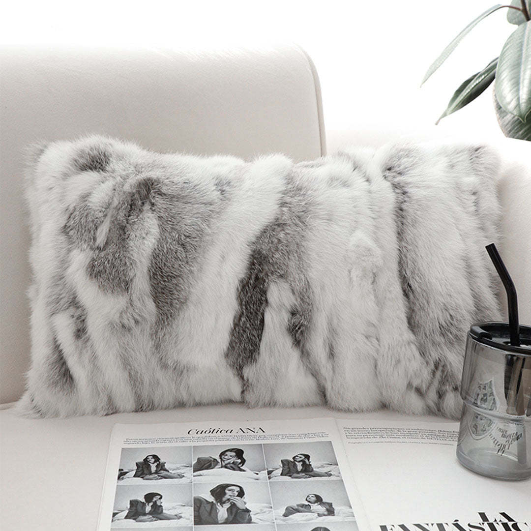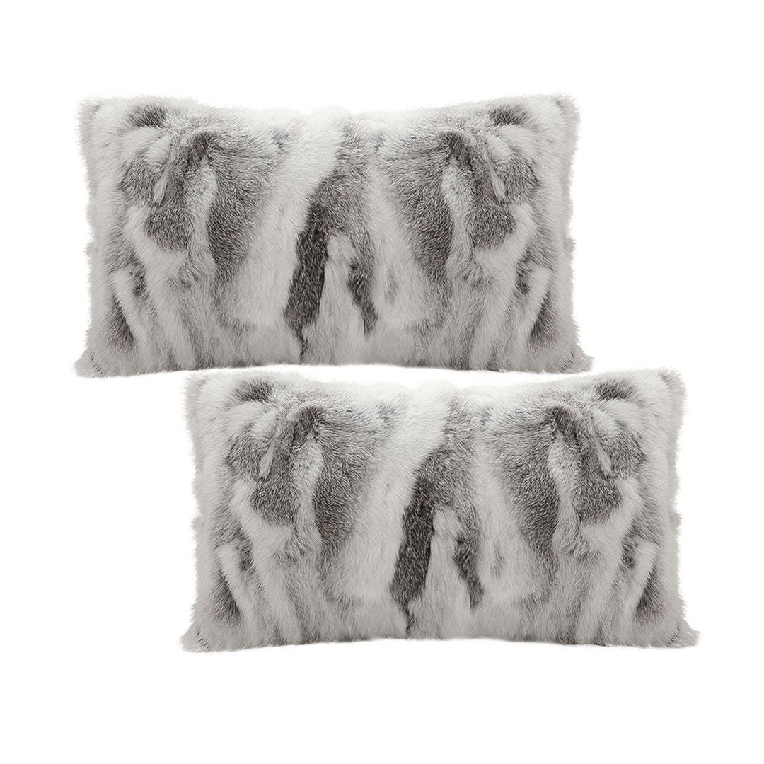 SOGA Set of 2 Luxury Faux Fur 30x50cm Decorative Pillow Covers (Gray/White)