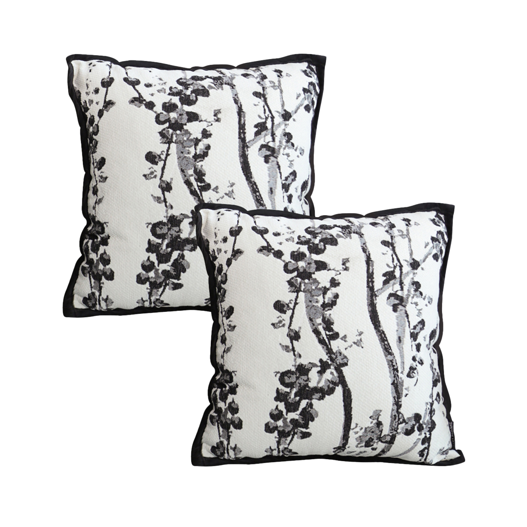 SOGA 2x 45cm Black White Botanical Pillow Covers for Home Decor
