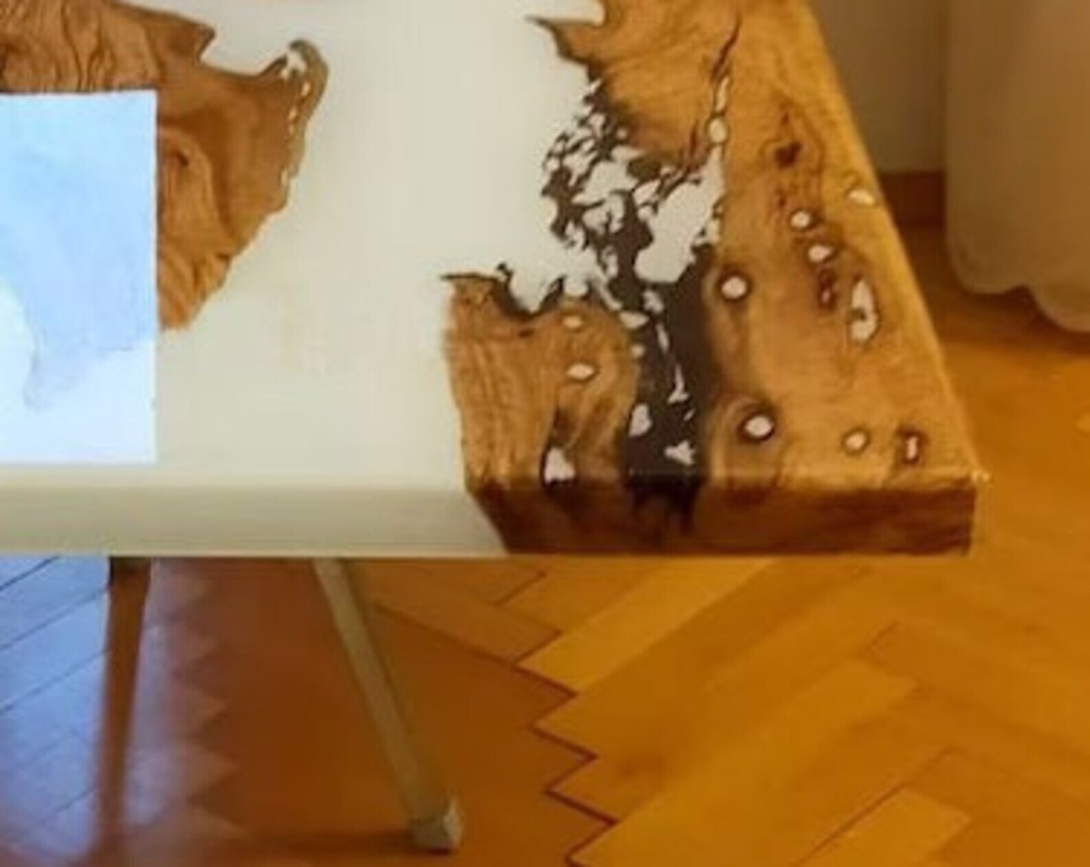 White Epoxy Table, Resin Coffee Table, River Coffee Table, Luxury Furniture