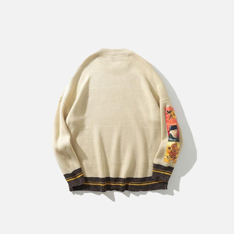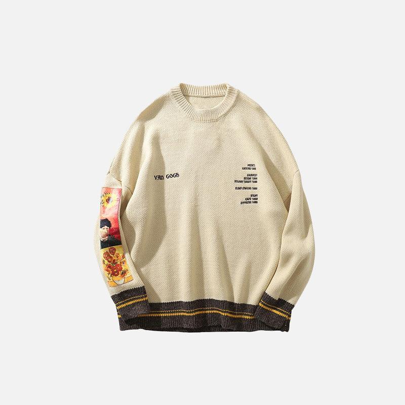 DETAILSO-neckStandard thicknessFlat knittedCotton WoolLoose fit Wrap yourself in artistic flair with our Van Gogh Sweater. Featuring a design inspired by the iconic works of Vincent van Gogh, this sweater adds a touch of creative sophistication to your streetwear ensemble. Elevate your look with this trendy and express\nOrder processing time is 1C3 business days. Once shipped, delivery usually takes 7C12 days, depending on your location and shipping conditions. A tracking number will be provided so you can check the delivery status at any time. Thank you for your patience and support!