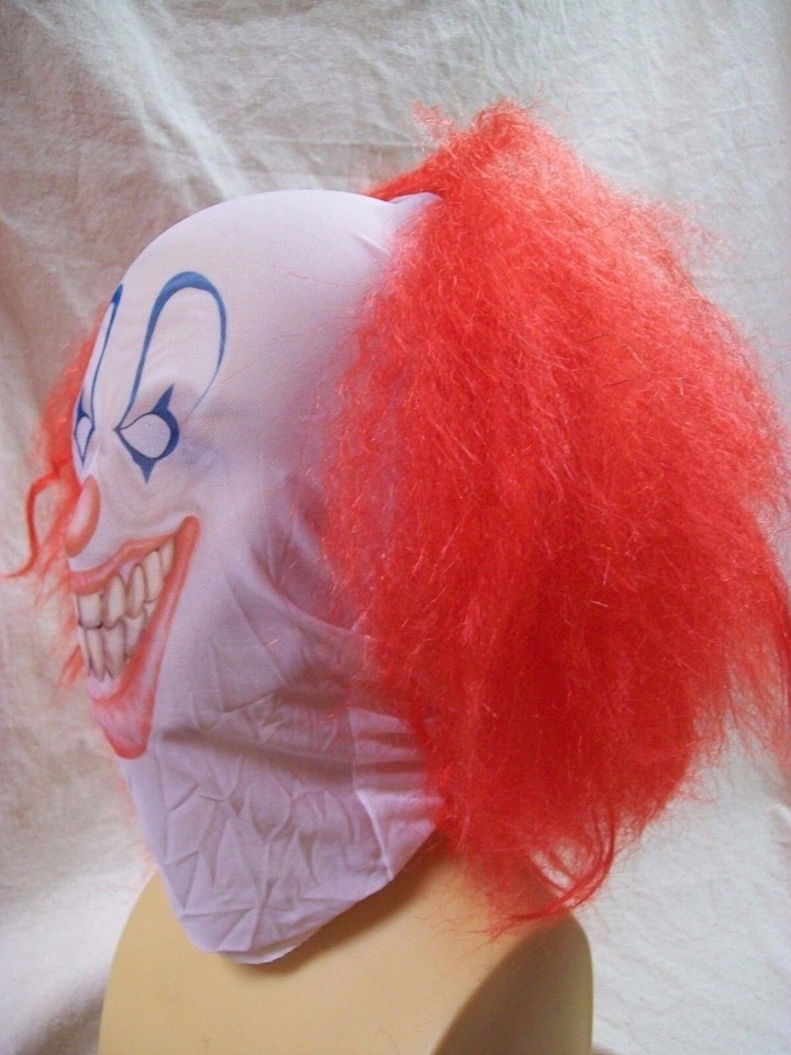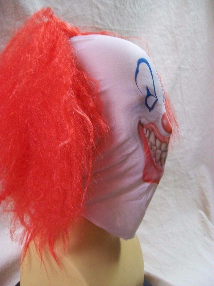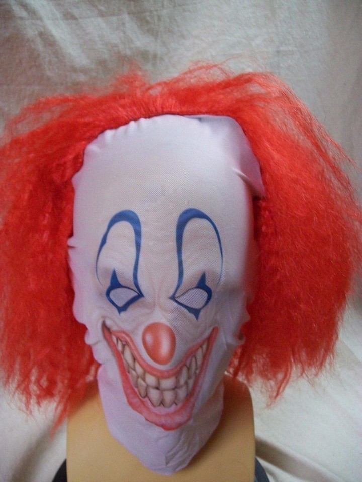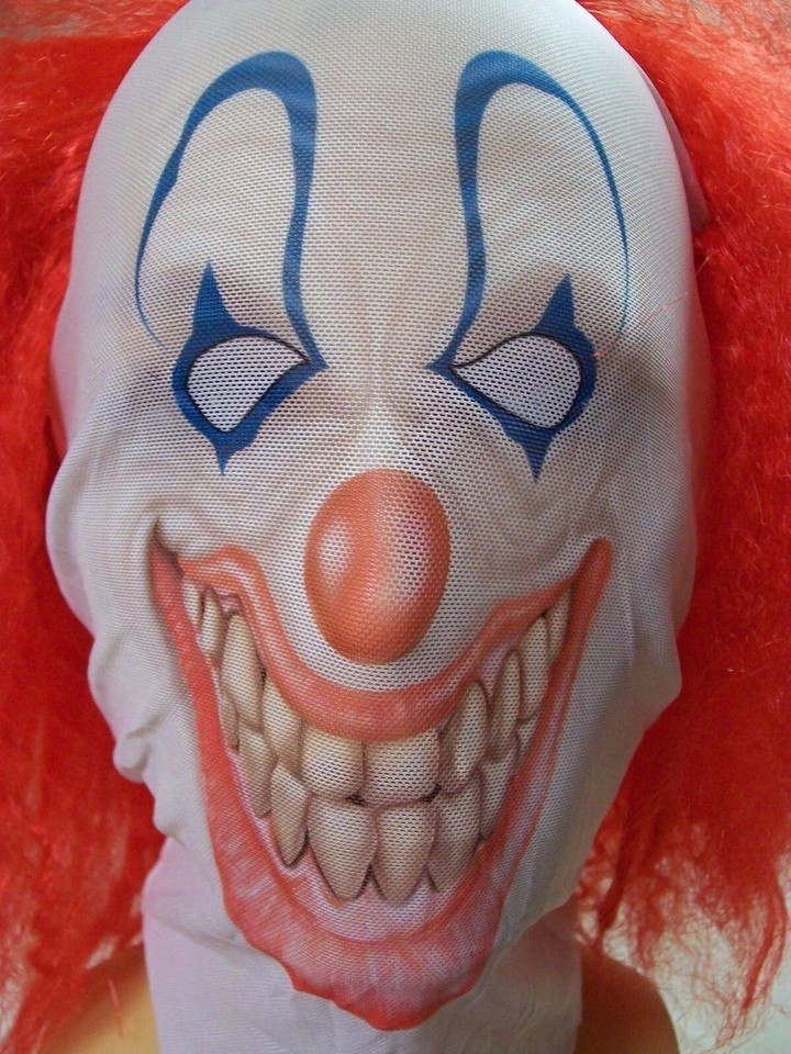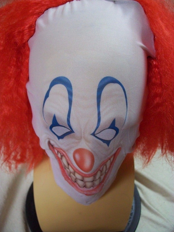 Creepy Clown Face Costume Mask w Red Wig Evil Circus Big Top Horror Pennywise It