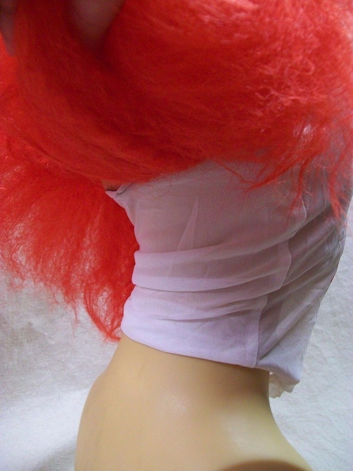 Wig is Bright Red. Hair is wild. The fiber is coarse, crimped and ratty. The hair is attached kinda weird on this one. The hair is attached to the upper portion of the mask. It may be necessary to adjust the fiber to conceal cap and or mesh. Printed Mesh Mask, Print is only on the front. Super Creepy Clown Face. If up close it is possible to see through to your eyes. Mask material is thin and looks like it would snag easily, please take extra care if you have longer fingernails. The mask does have some wrinkling and creasing from being in package. As it stretches, the wrinkles will be less visible. If wrinkles don't ease up or are bothersome, mist lightly with a wrinkle reducing spray or water. Do not iron, I think it would probably melt mask material. The mesh is sorta sheer so eyes etc may be slightly visible. Mask features such as eyes, nose, mouth may not line up with your features. Please use caution while walking as wearing the mask may reduce visibility. Do not wear while driving, riding bikes, or operating machinery. DOES NOT INCLUDE MANNEQUIN.