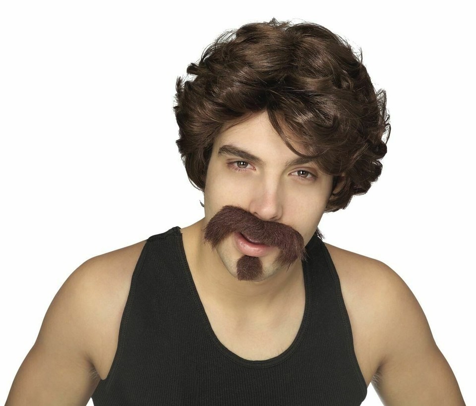 Brown Big John Costume Wig Mustache Goatee Adult Star 70s 80s Sleazy Uncle Rico
