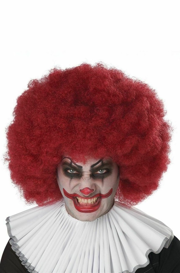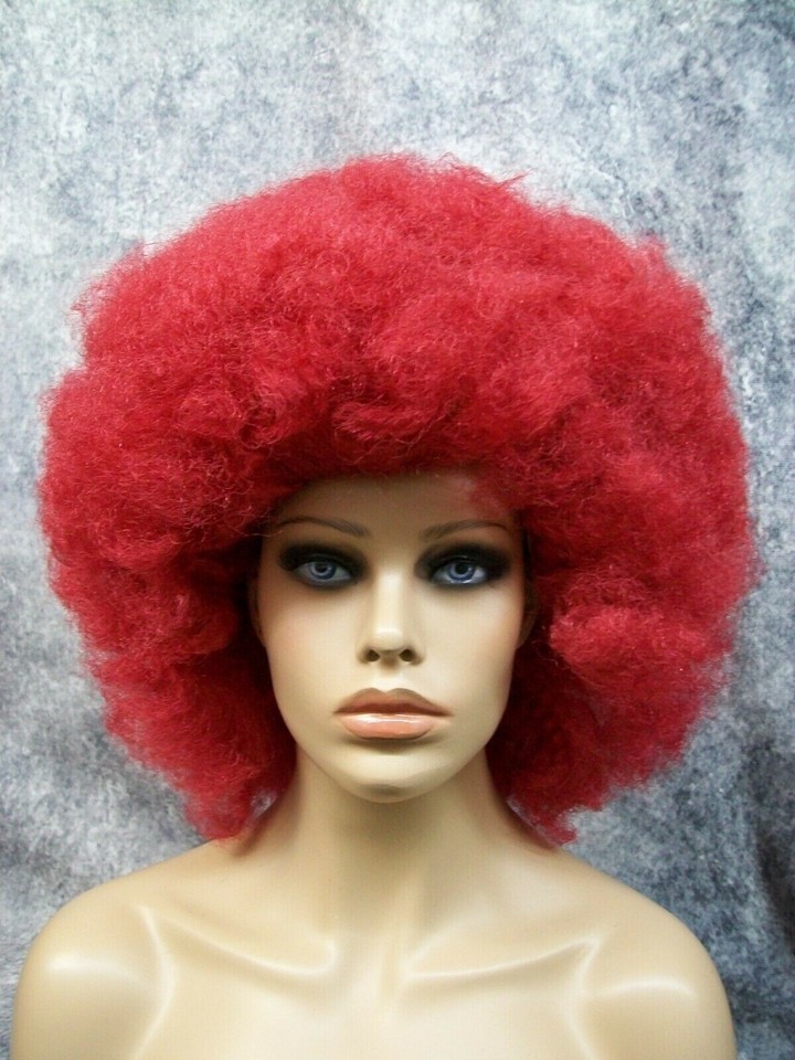 Dark Red Jumbo Afro Wig Super Frizzy Creepy Clown Evil Psycho Circus Hobo Unisex