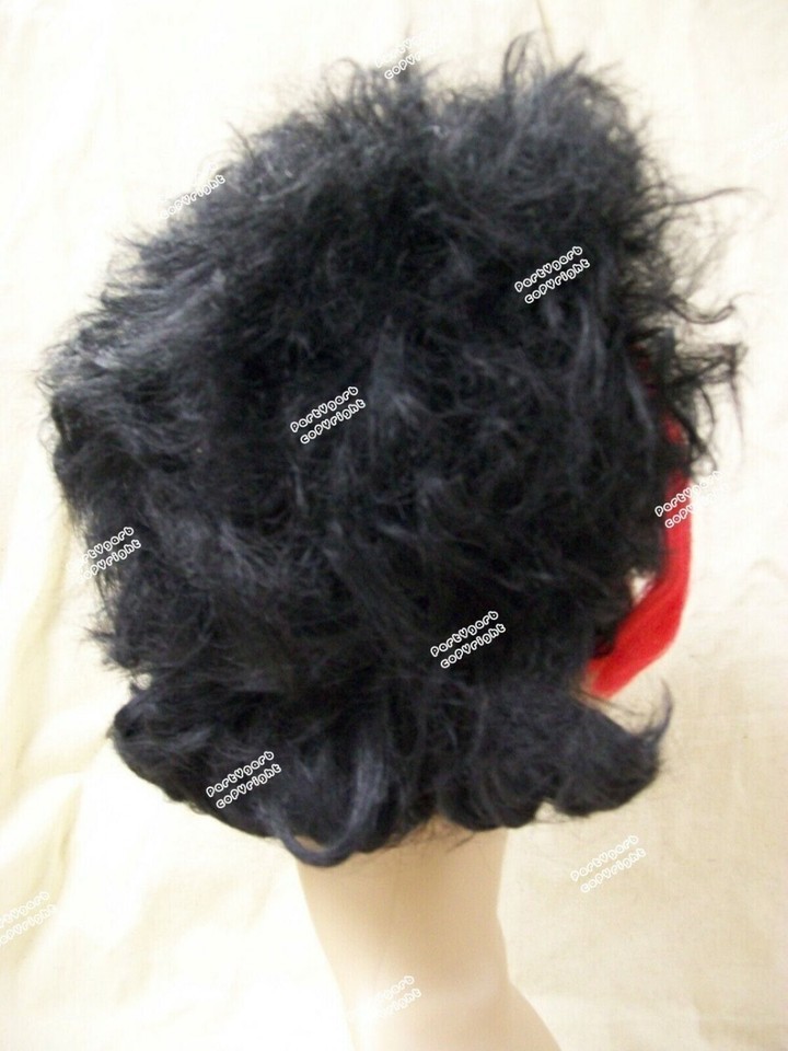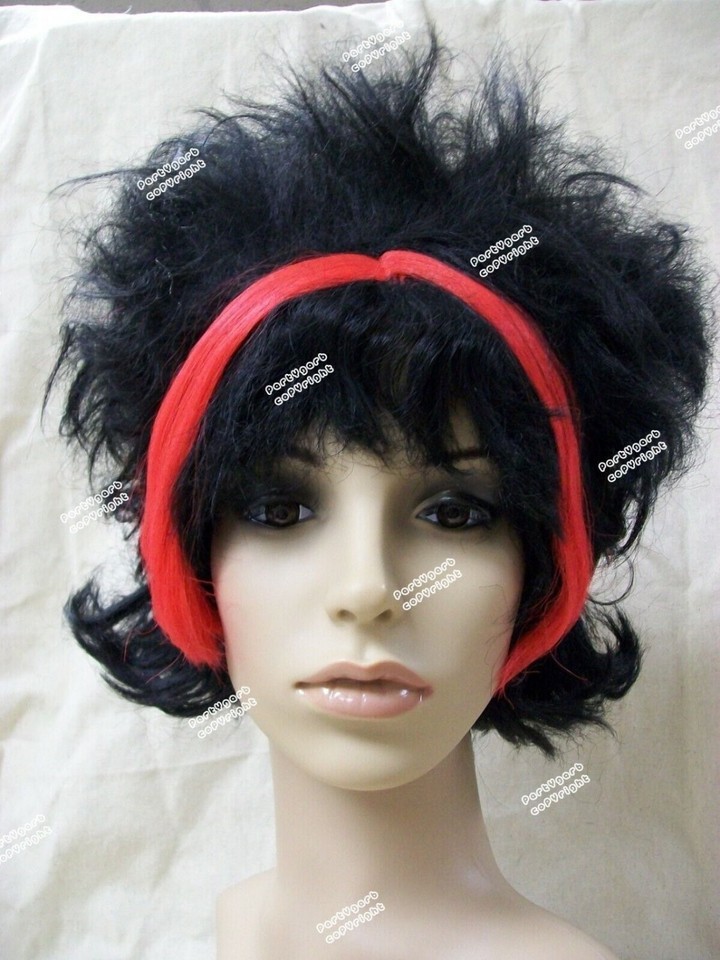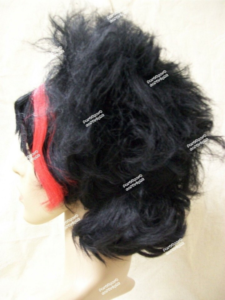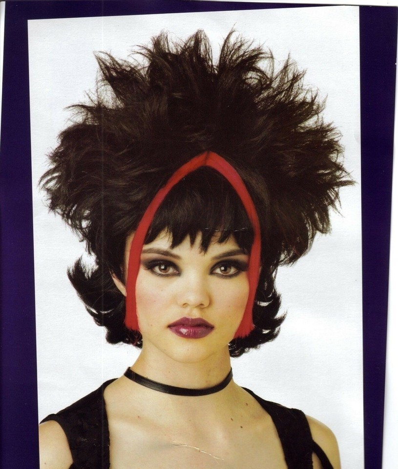 Chunky Gothic Wig Black with Red Streaks Goth Punk Evil Pixie 90s Grunge Rocker