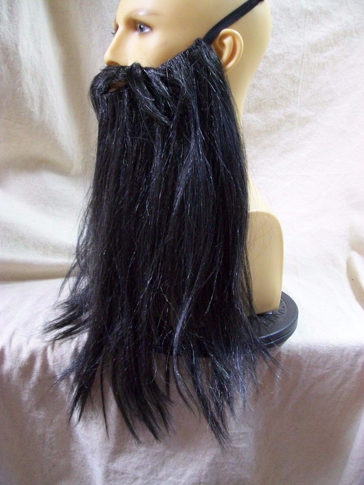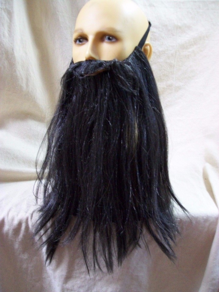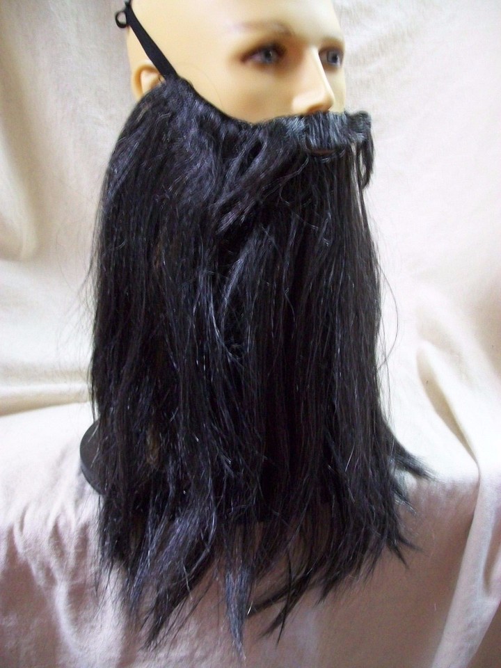 Black Gray Biker Beard Costume Facial Hair Rocker Merlin Dark Wizard Pirate Dude