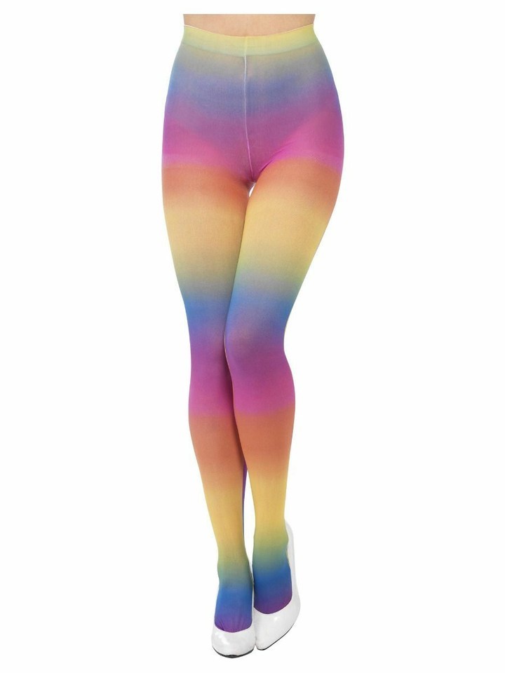 Colorful Rainbow Tights. Colors fade into each other. Adult. One size fits most. (Regular OSFM hosiery usually fits approx. 90 to 160 lbs but may not fit everyone.). May also fit Teens. Could be used with costumes such as: Carnival Clown, Rainbow Brite, Cutie Pie Circus Clown, Hippie, Woodstock, 70's, Gypsy, Free Spirit, 80's Valley Girl, Groupie, Mod, Elf, Faerie, Rainbow Fairy, Sprite, Harajuku, etc.