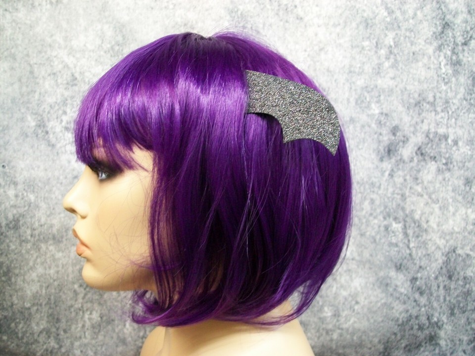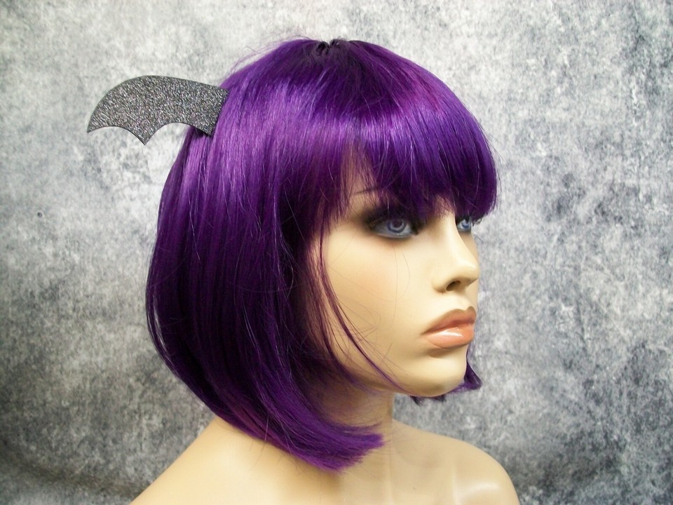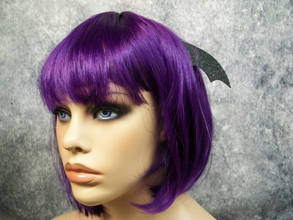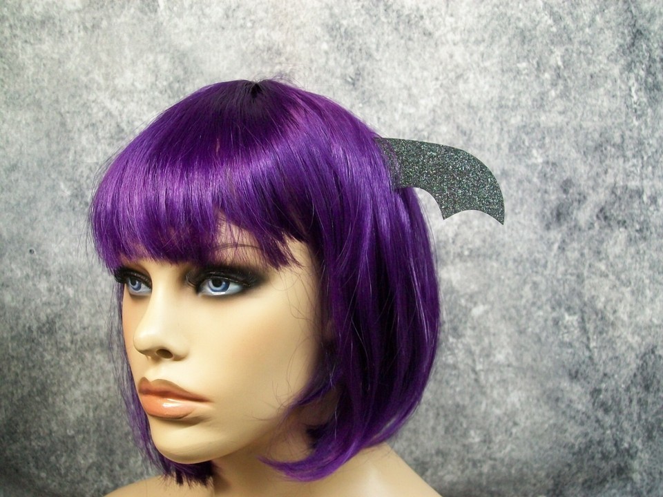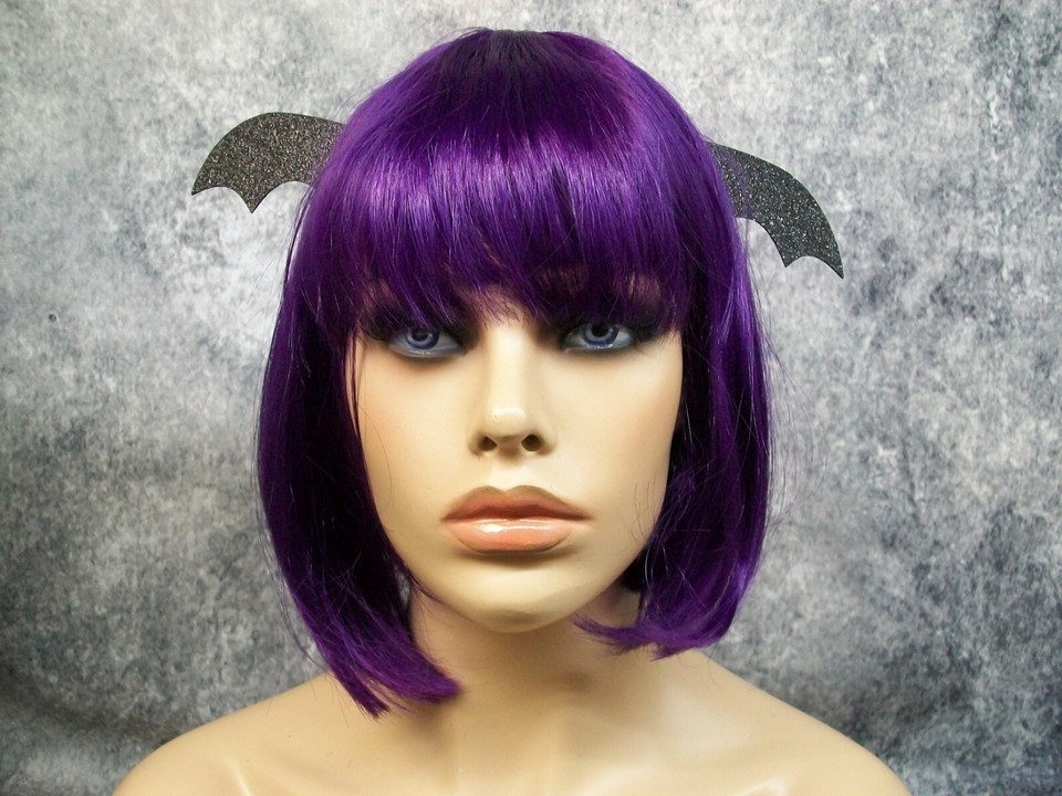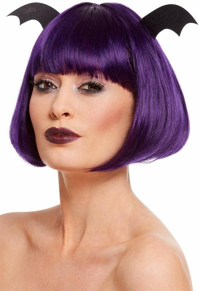 HALLOWEEN PARTY BOB COSTUME WIG WITH ATTACHED GLITTERY BAT WINGS