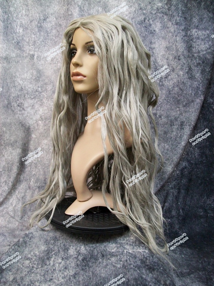 Gray Bohemian Wave Wig Grandmama Addams Granny Frump Wicked Witch Sorceress Vamp