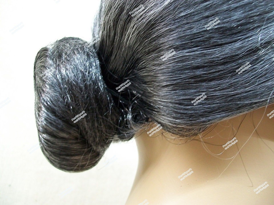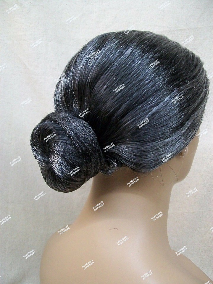 Granny Bun Costume Wig. Cap feels a little smaller on this wig. Pulled back style so it may expose your natural hairline. It would be better suited for those with shorter natural Hair. Adult Use: One Size Fits Most.