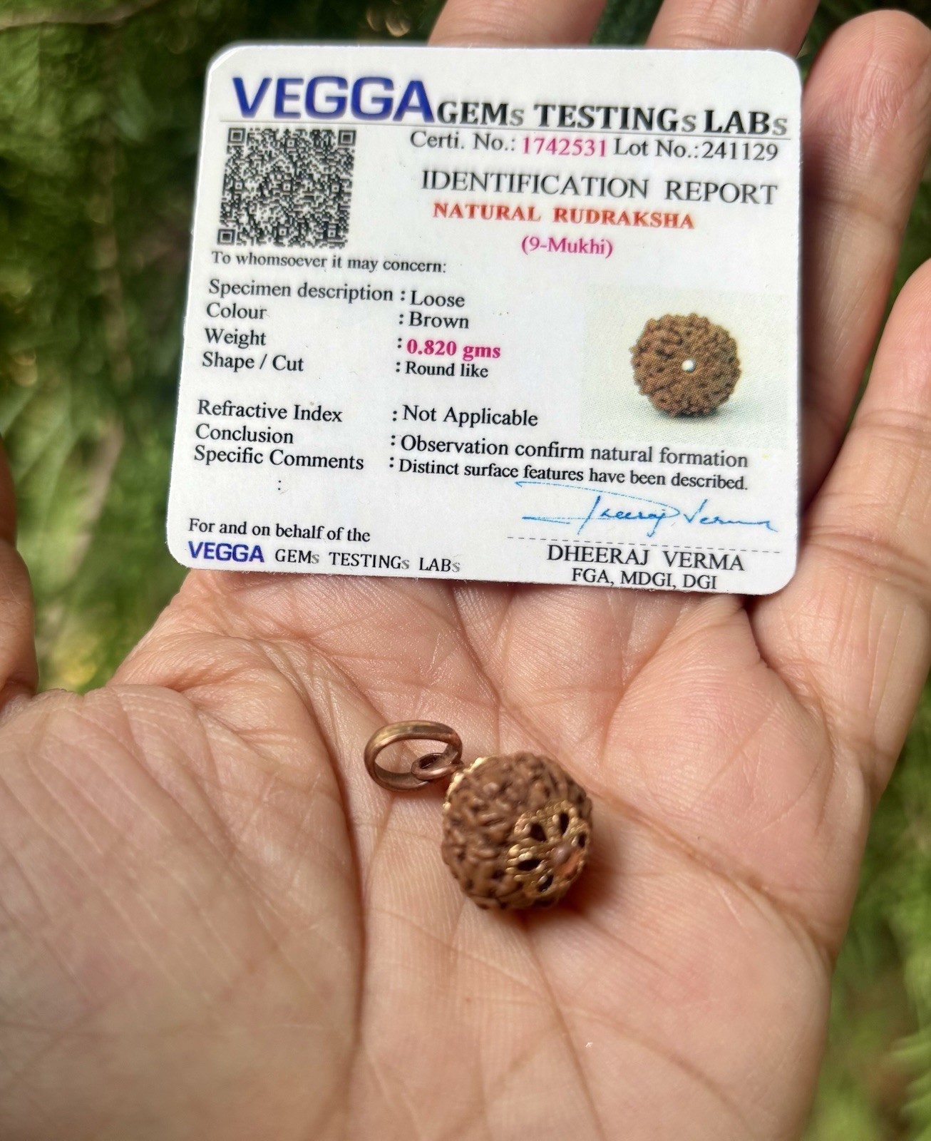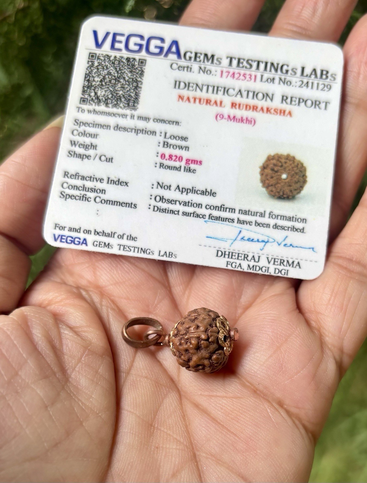 Lab Certified Pure Copper + 9 Mukhi RUDRAKSHA Rudraksh 9 Face Pendant, Original