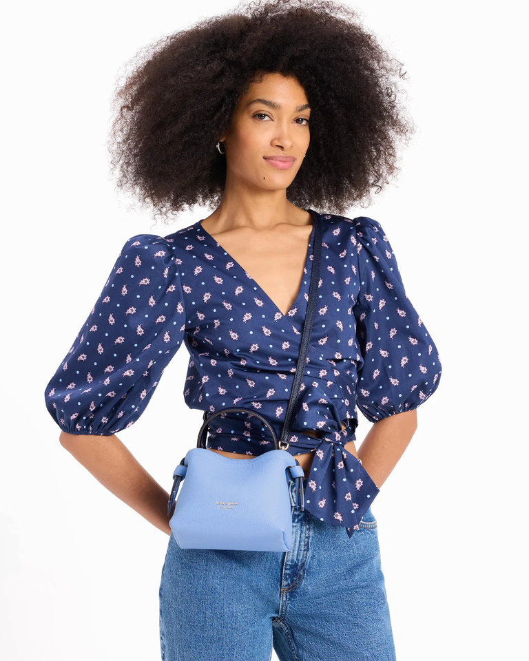 New Kate Spade Knott Colorblocked Mini Crossbody Tote Pebble Leather Genie Blue