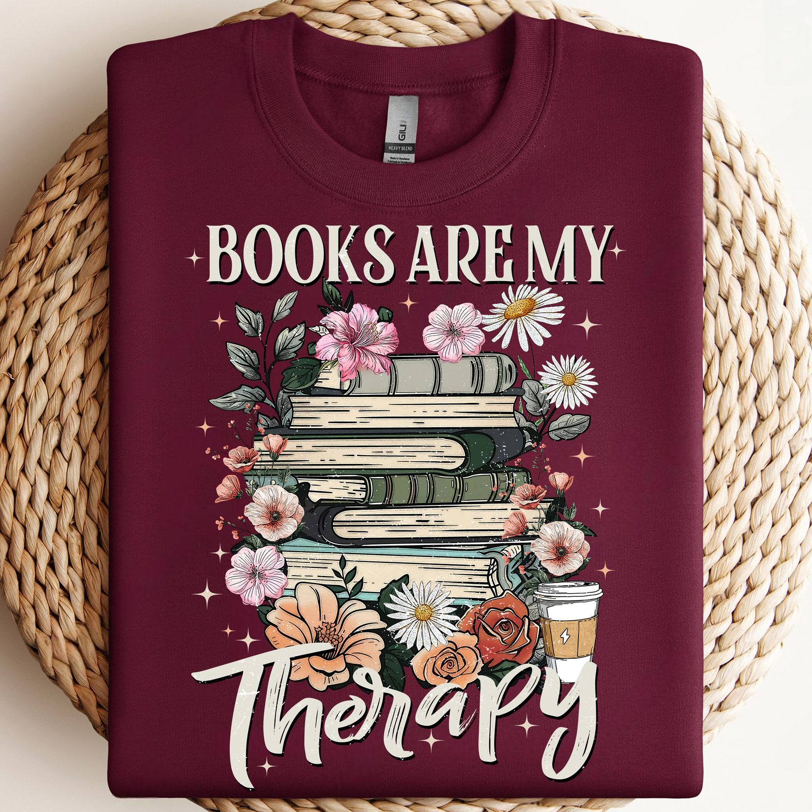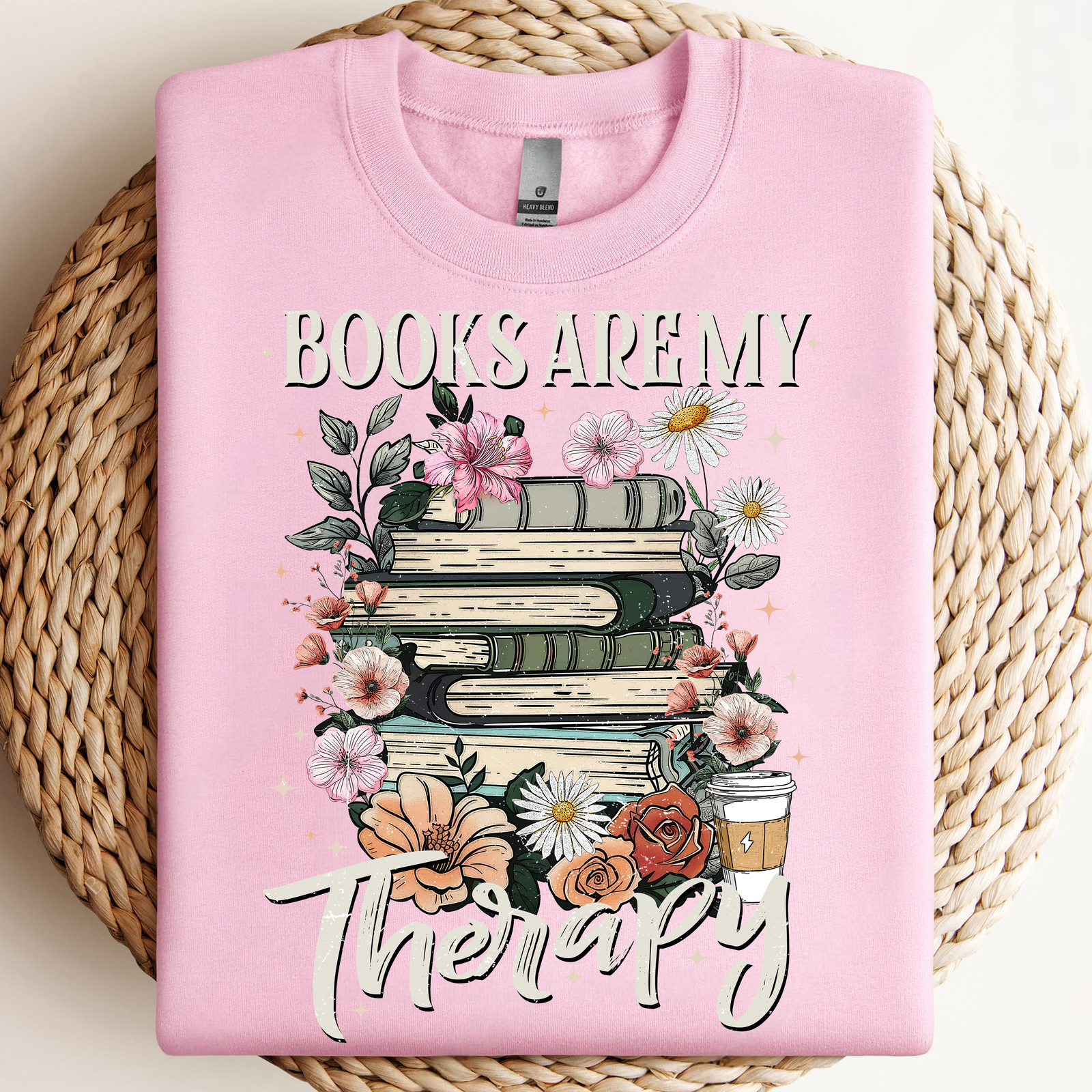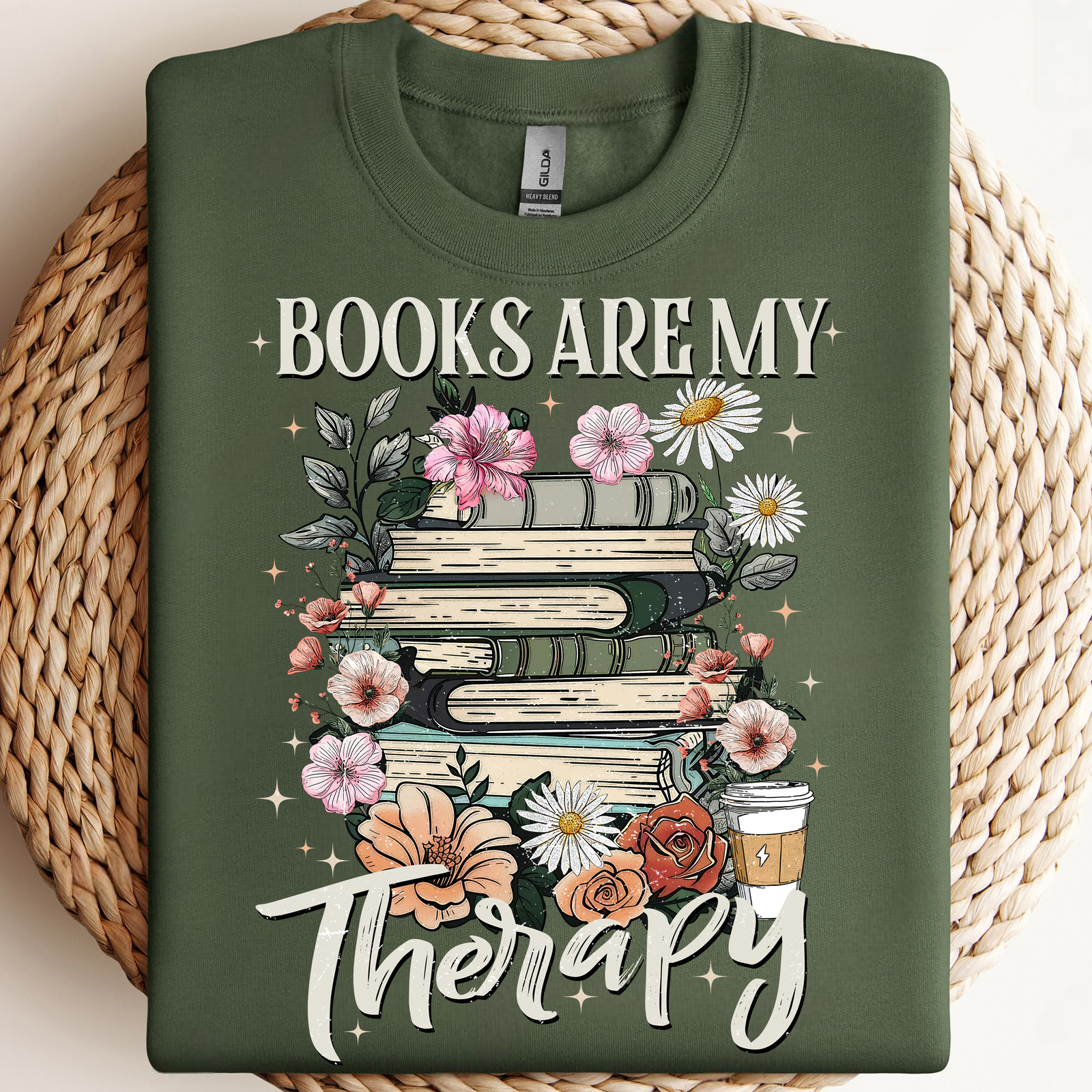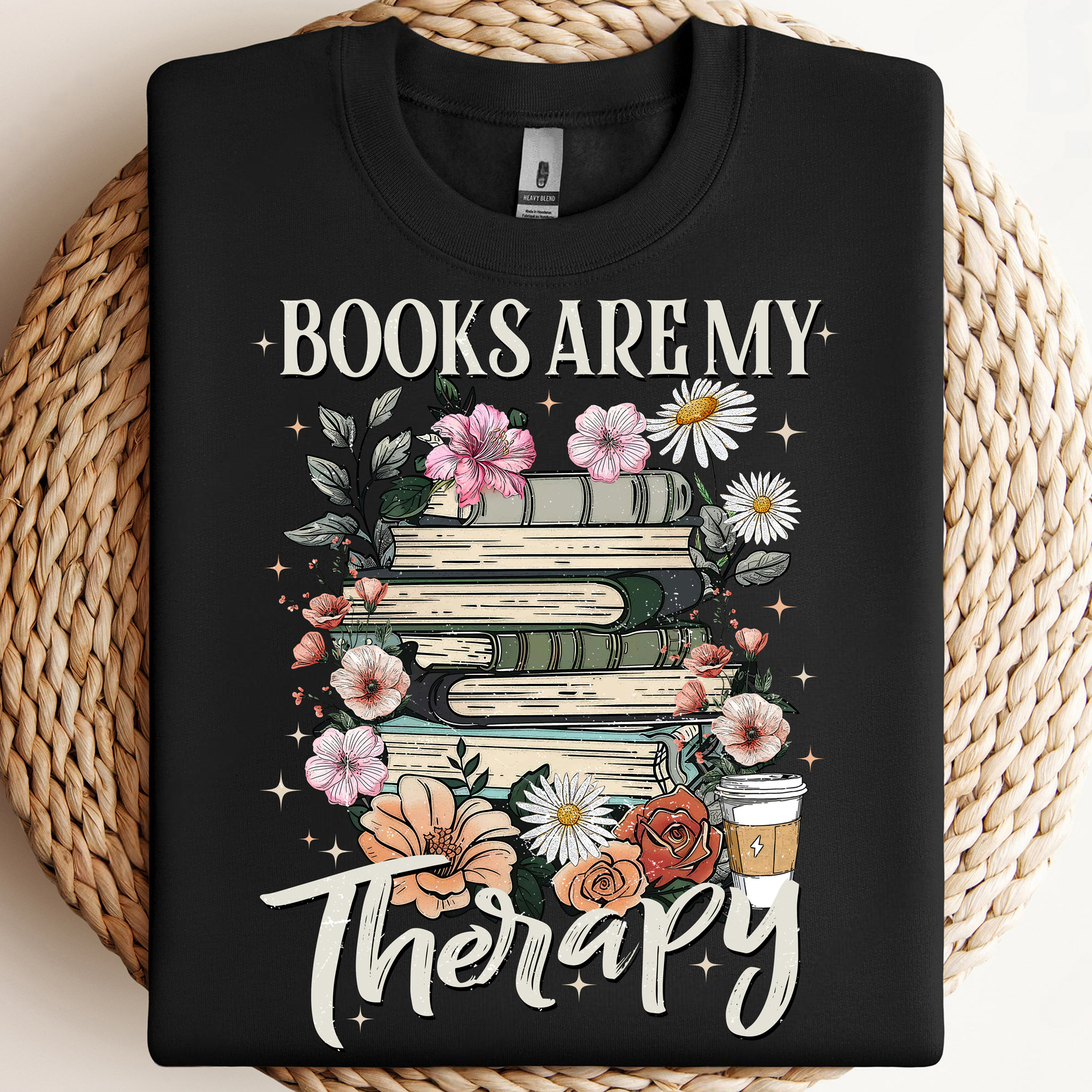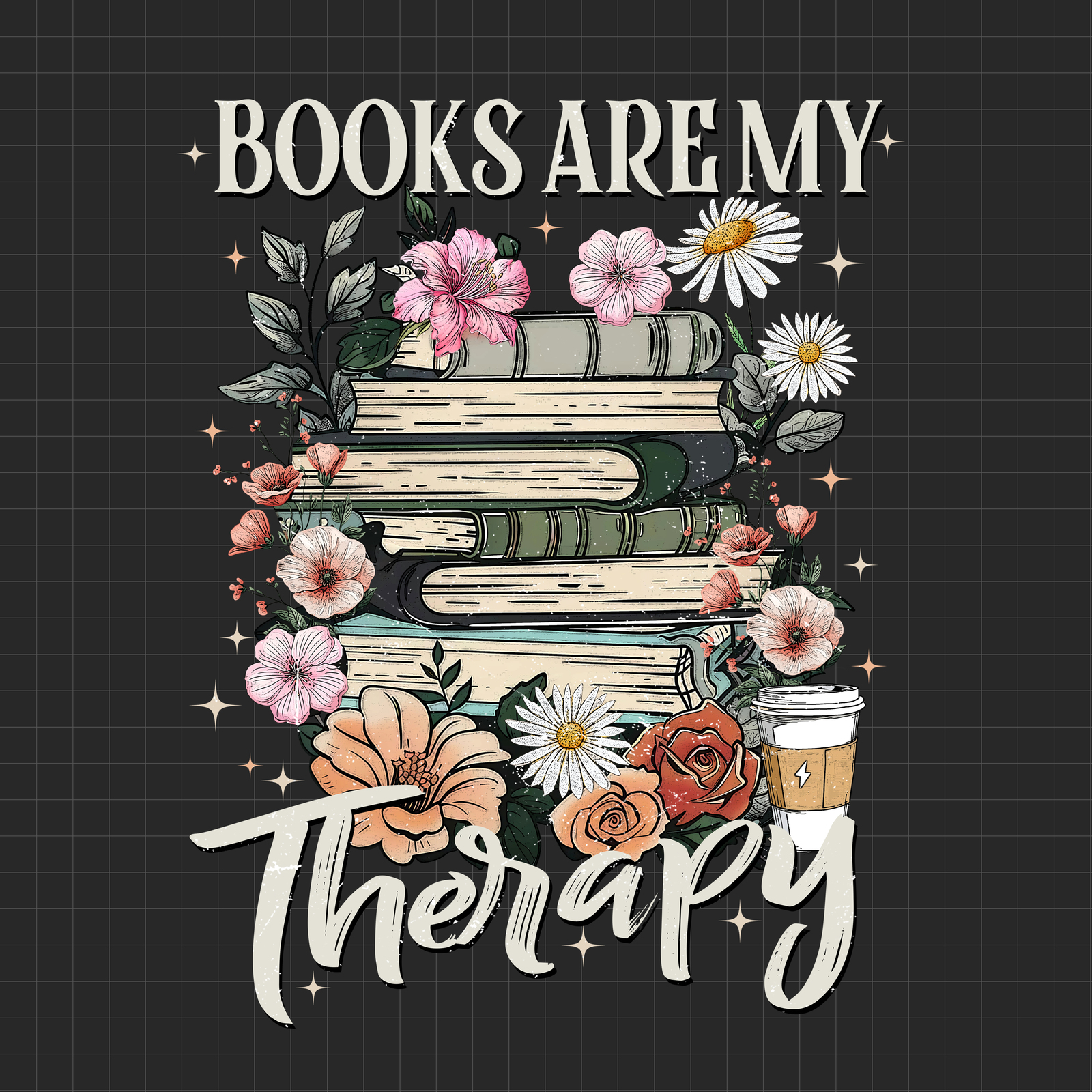 Books Are My Therapy PNG, Floral Book Stack PNG, Book Lover Retro Design, Vintage Sublimation Art for Readers Teachers, Bookish Vibes PNG, Trending Design