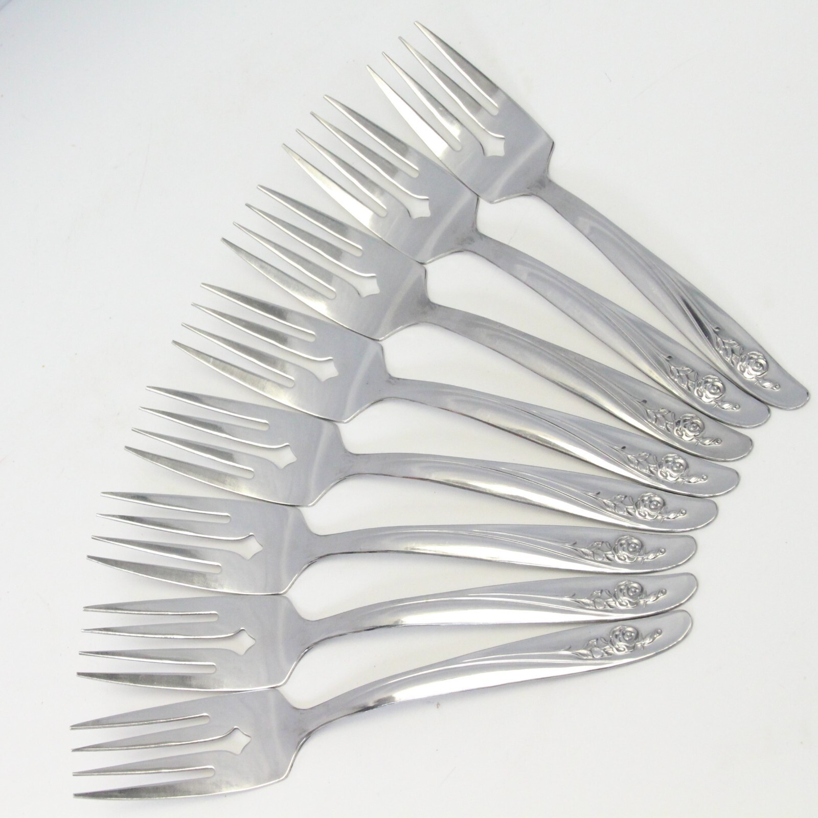 Oneida Roseanne Salad Forks 6-1/4" Stainless Lot of 8
