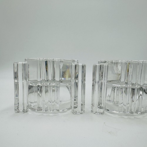 Enhance the ambiance of any occasion with this set of two beautiful Lenox Fine Crystal candle holders. Crafted in Germany, these contemporary style candle holders feature an asymmetrical, abstract design and a glossy finish that adds a touch of elegance to any space. The clear crystal material reflects the candlelight beautifully, creating a stunning visual effect that is perfect for all occasions.