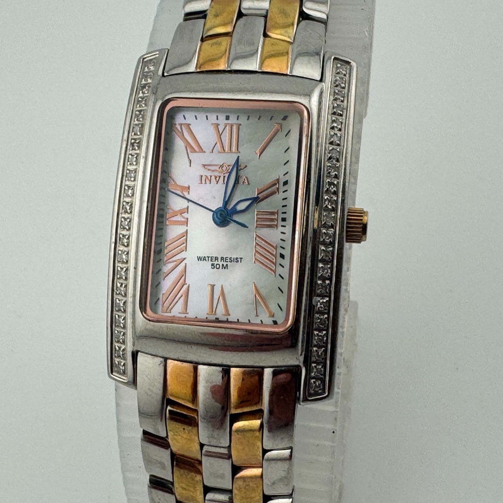 Invicta Quartz Watch Women Dual Tone Steel Rectangle Diamond Saphire New Battery