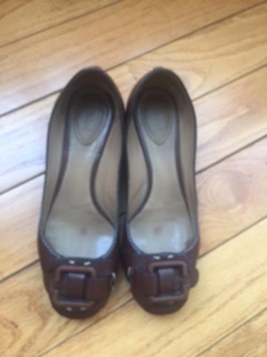 Pre-owned CHLOE Brown Buckle Front Ballet Flats 1.5'' wooden heel SZ 36.5 ITALY