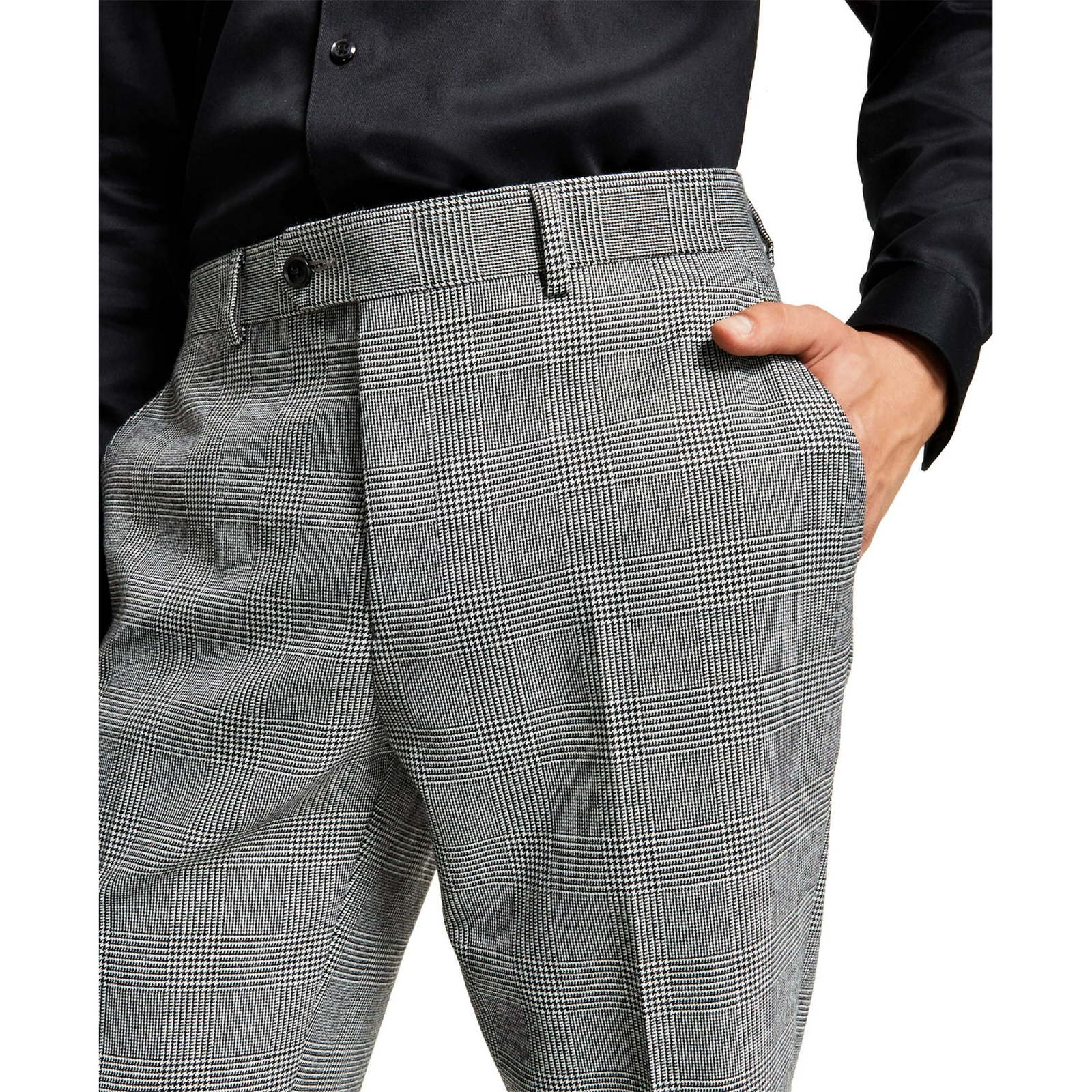 Keep your look stylish in any setting with the contemporary tailoring and crisp plaid of these suit pants from Bar III.