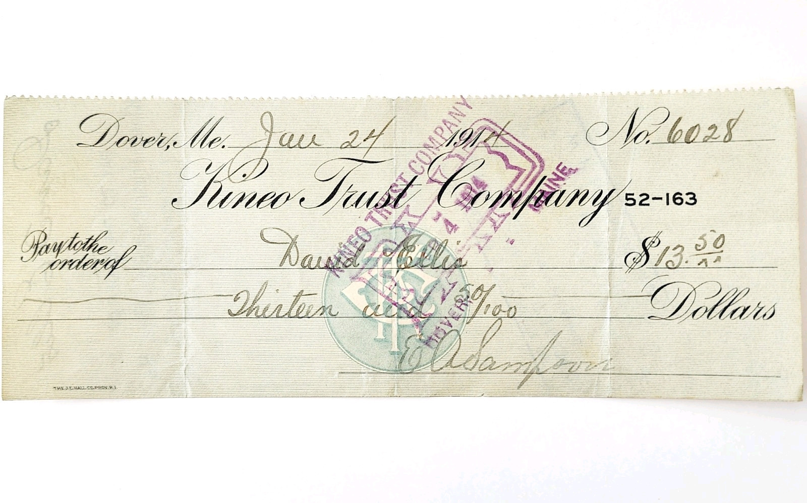 1914 Kineo Trust Company Bank Check E.A. Sampson Dover Maine Signed 6028 CHX7