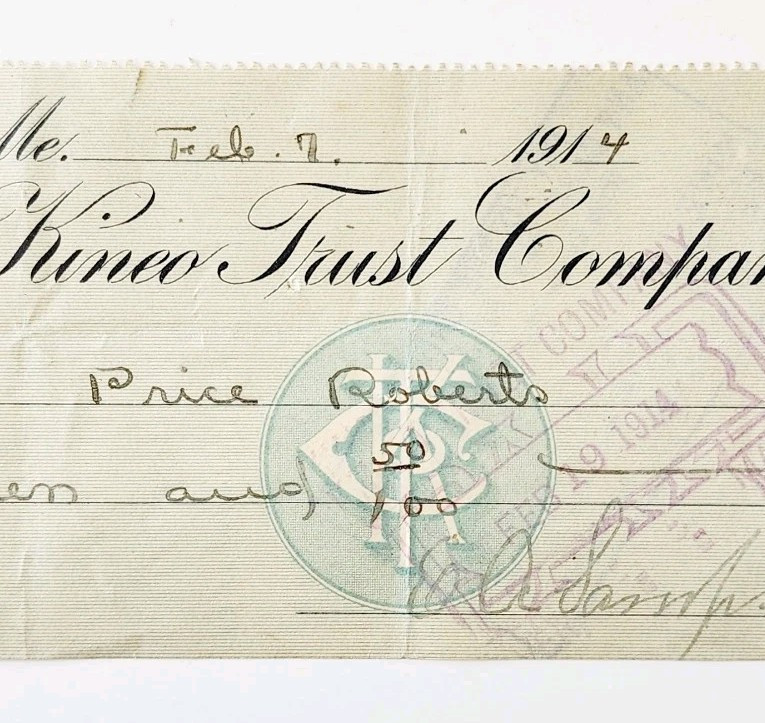 1914 Kineo Trust Company Bank Check E.A. and similar items
