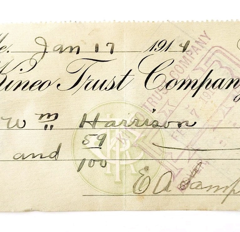 1914 Kineo Trust Company Bank Check E.A. and similar items