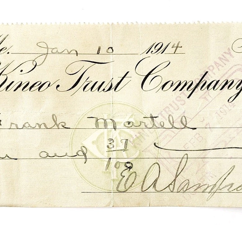 1914 Kineo Trust Company Bank Check E.A. and similar items