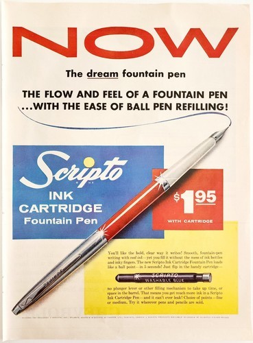 1958 Scripto Ink Cartridge Fountain Pen Advertisement Writing Instruments DWII15