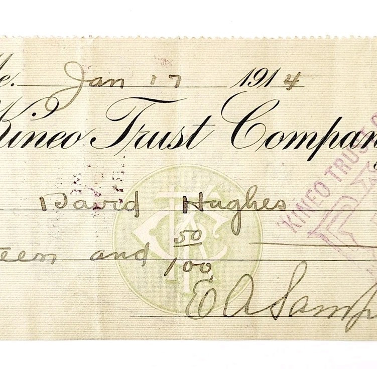 1914 Kineo Trust Company Bank Check E.A. and similar items