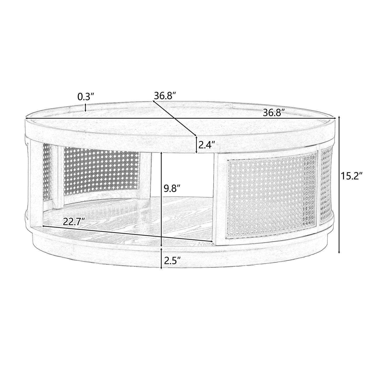 U-Can 36.8" Mid-Century Round Cane Coffee and 48 similar items