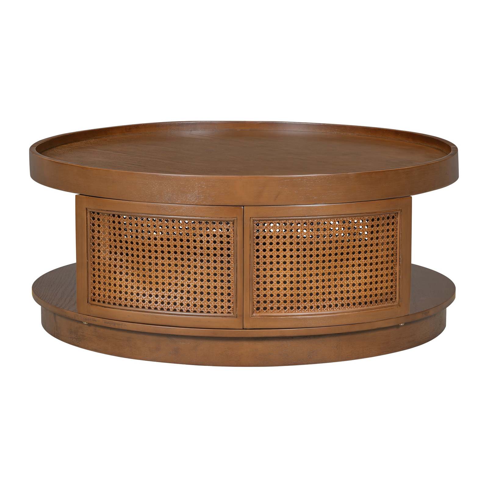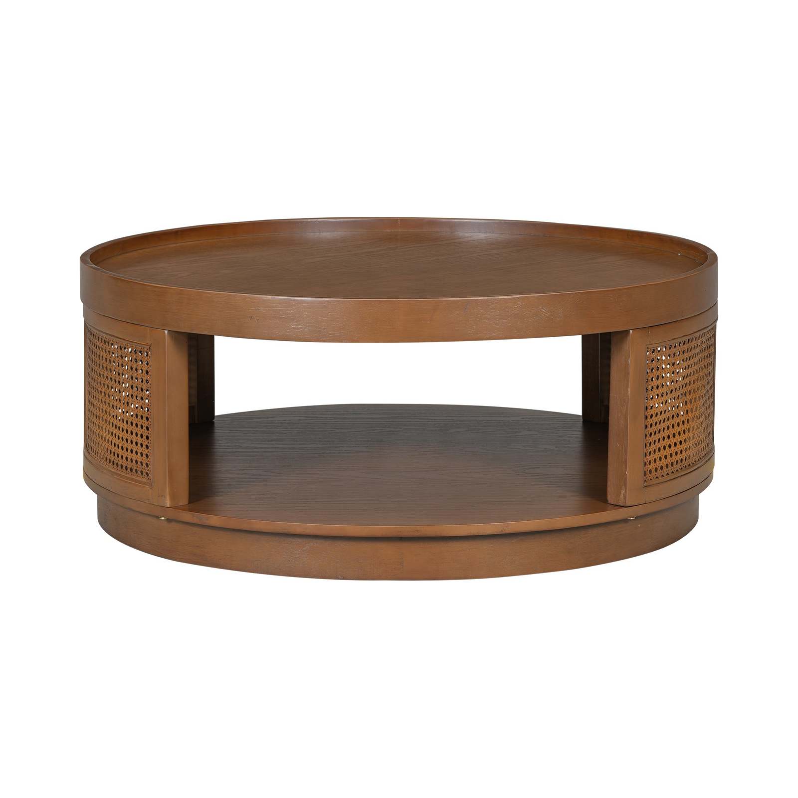 U-Can 36.8" Mid-Century Round Cane Coffee Table - Brown