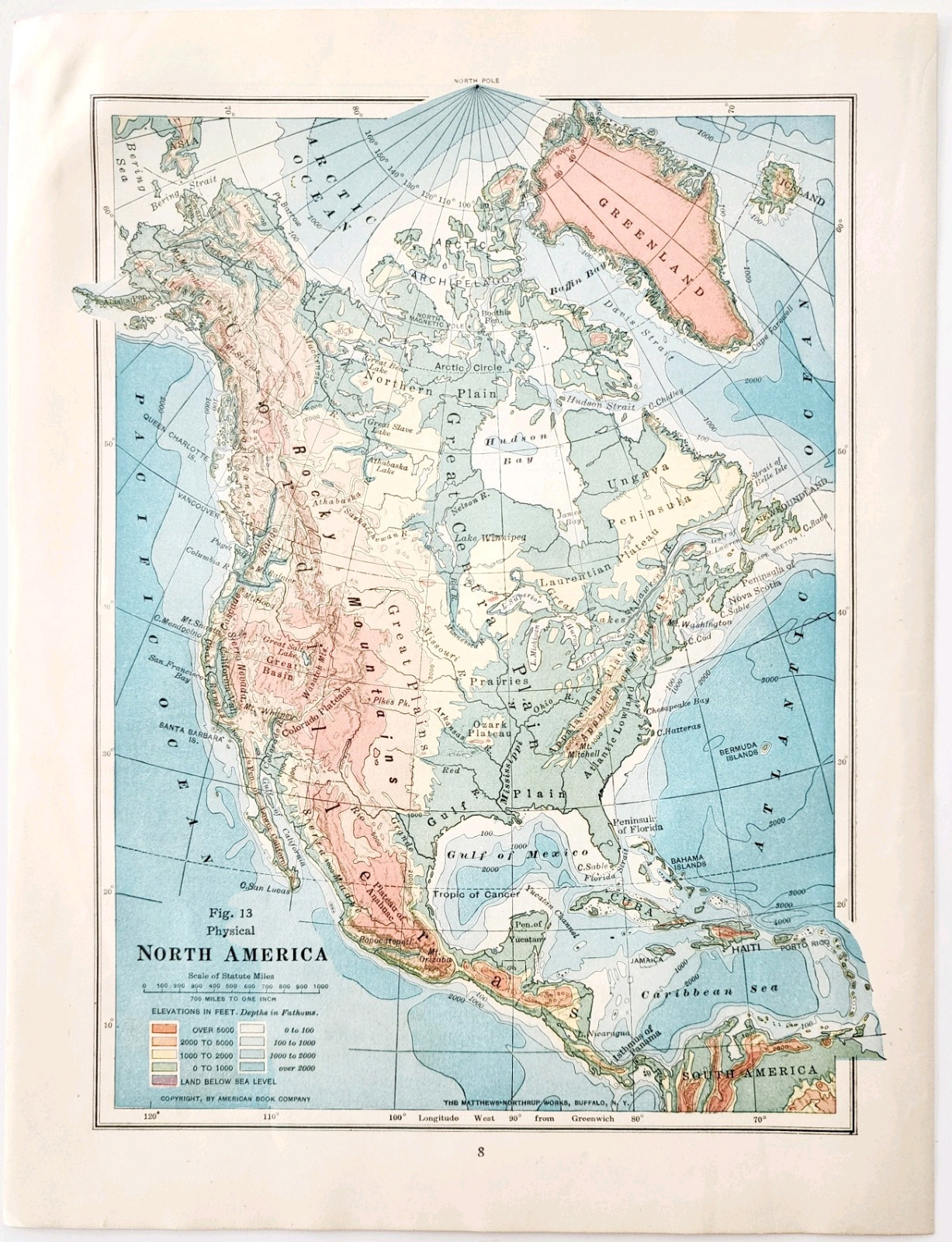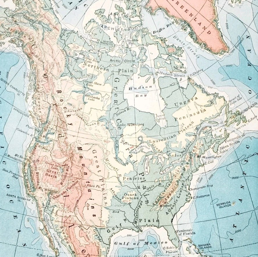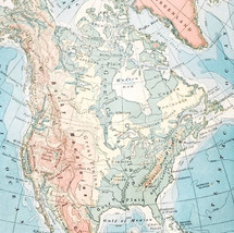 1916 Map North America Physical Greenland USA Mexico Canada Iceland DWSS8