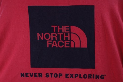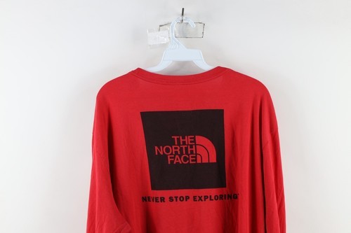 The North Face Mens 2XL XXL Faded Spell Out Big Logo Long Sleeve T-Shirt Red