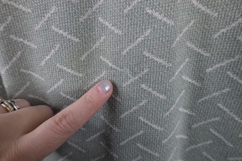 Color faded. Has pilling. Fabric pull front middle