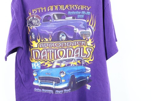 Vintage Y2K 2003 Mens M Faded Spell Out Adirondack Nationals Hot Rod T-Shirt USA