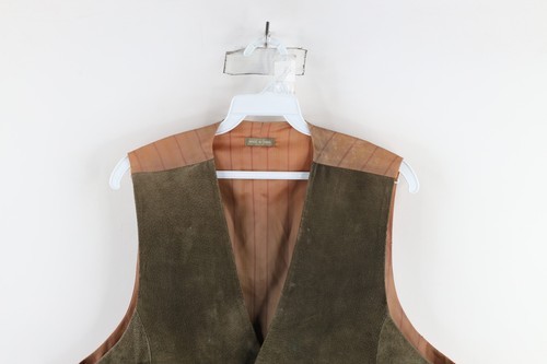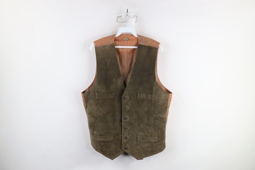 Vintage 90s Streetwear Mens 42 Distressed Suede Leather Buckle Back Vest Green