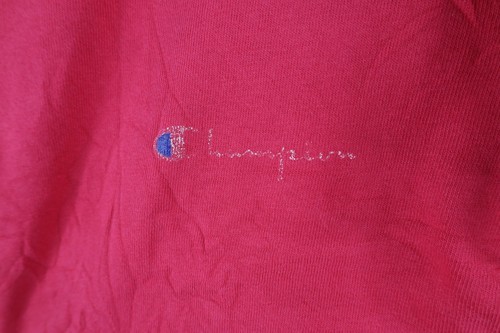 Vintage 80s 90s Champion Mens Size Large Faded Spell Out Knit T-Shirt Pink USA