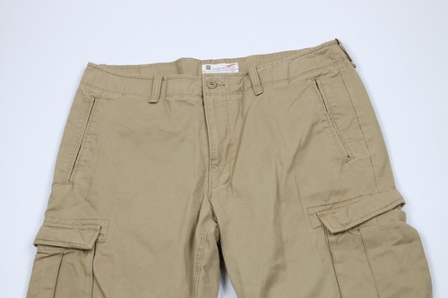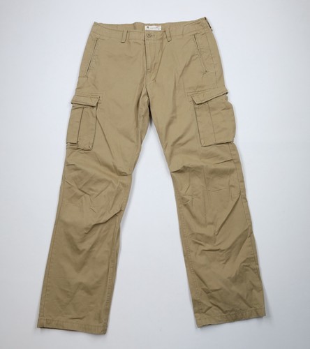 Vintage Y2K Gap Mens 36x34 Distressed Baggy Wide Leg Cargo Pants Beige Khaki