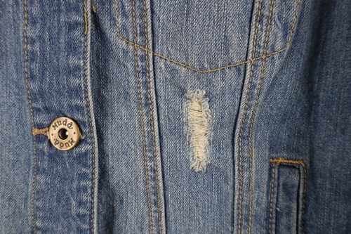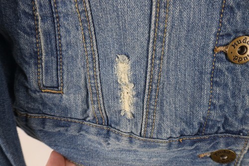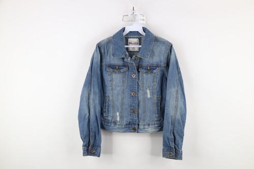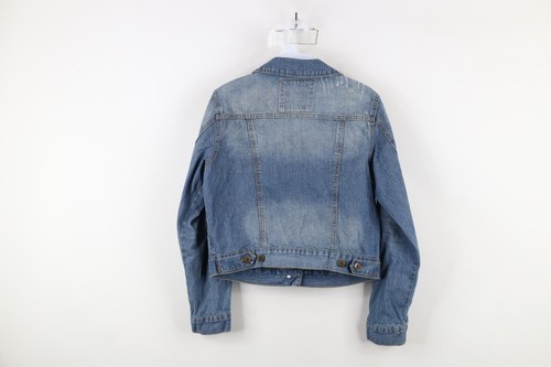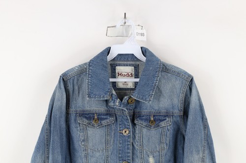 Vintage Y2K MUDD Womens Large Distressed Cropped Baby Doll Denim Trucker Jacket