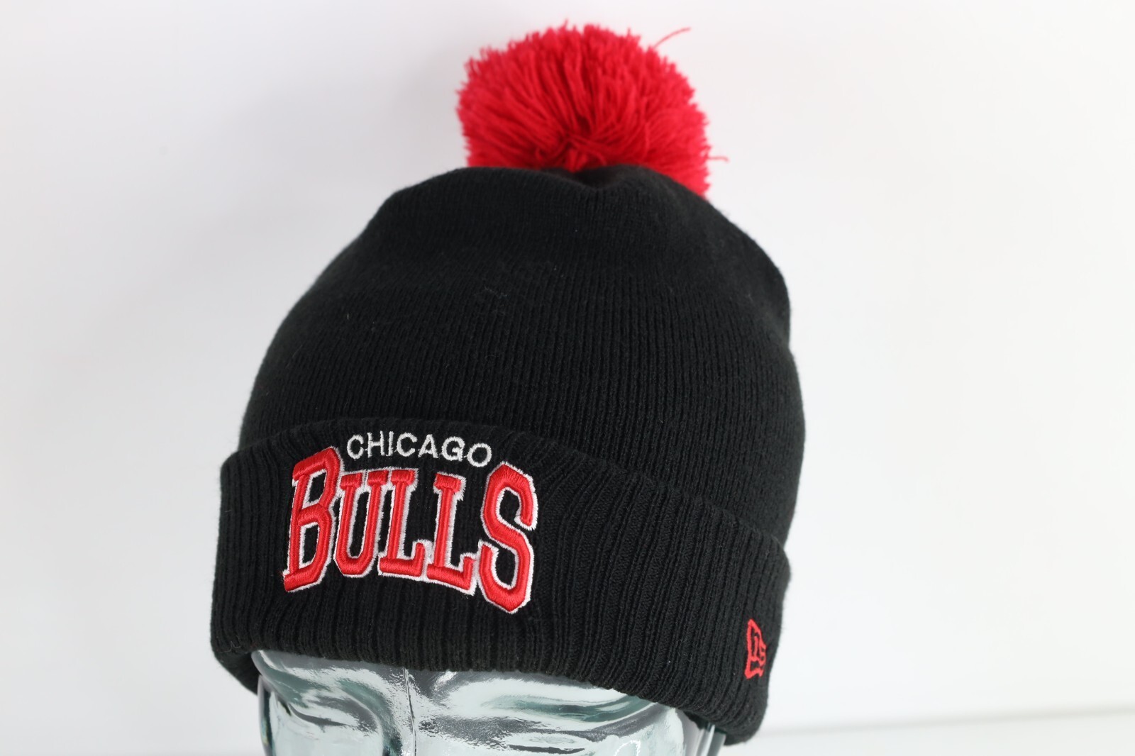 Vintage New Era Hardwood Classics Chicago Bulls Basketball Pom Winter Beanie Hat