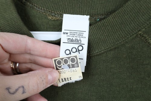 Deadstock Vtg 70s 80s Gap Mens Large Blank Crewneck Sweatshirt Olive Green USA