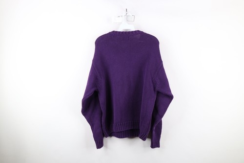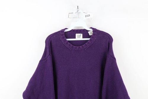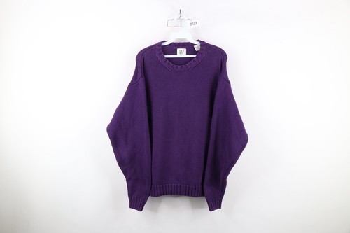 Vtg 90s Gap Mens Medium Faded Blank Heavy Cotton Knit Crewneck Sweater Purple