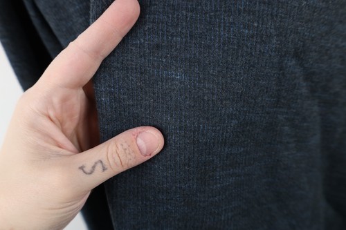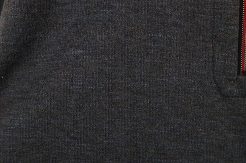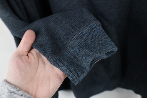 Blemishes/dark spots front, back, arms both side. Collar, cuffs discolored. Color faded. Pilling