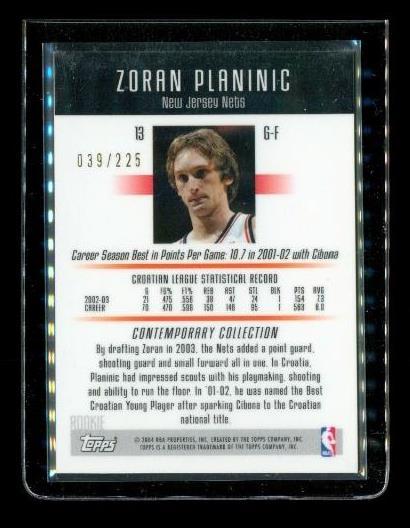 2003-04 Topps Contemporary Red #13 ZORAN PLANINIC Rookie RC 39/225 NJ Nets