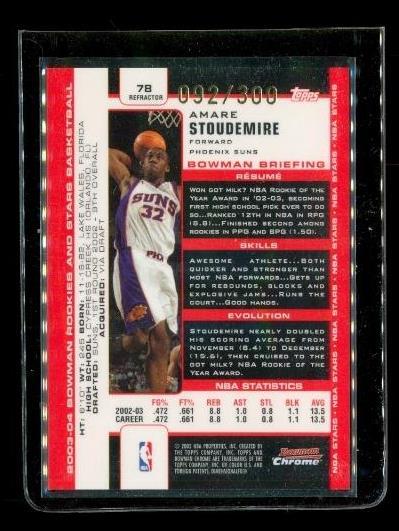2003-04 Bowman Rookies Stars Chrome Refractor 92/300 Amare Stoudemire #78. Raw and ungraded. Smoke and pet free.