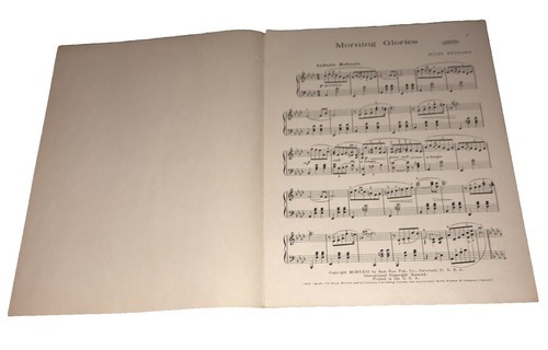 Transport yourself back in time with this vintage sheet music from Sam Fox Pub. Co. The musical piece titled "Morning Glories" is a delightful addition to any collection, with its beautiful melodies and timeless lyrics. Perfectly suited for fans of musicals, this sheet music is a must-have for any vintage and antique enthusiast.