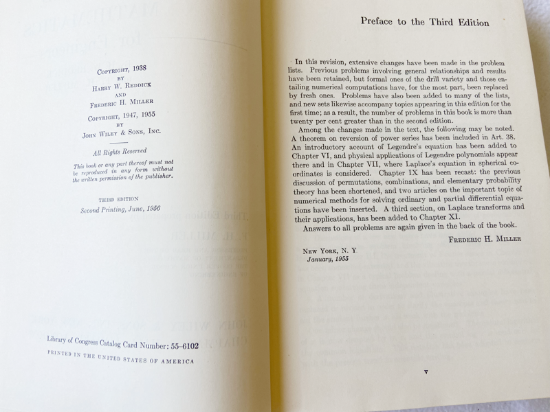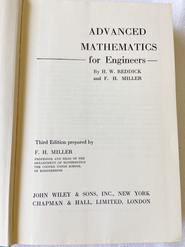 1956 HC ADVANCED MATHEMATICS for Engineers. Third Edition. by Harry W. Reddick